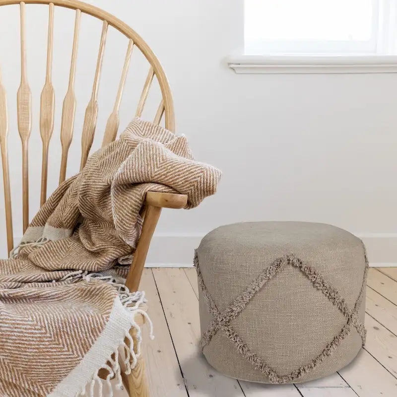 Add a fashion accompaniment to your home furniture with this handcrafted pouf of 100% cotton. The rich textured tufting in a diamond pattern adds to its inherent charm. You can use this decorative seater as a convenient side table or as a footrest after a tiring day.
