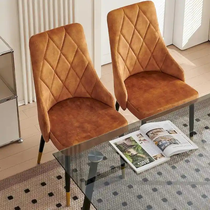 - Dining Table Set for 4 : Including a 51-Inch rectangular glass dining table and 4 upholstered velvet dining chairs. This modern kitchen table is made of 8mm tempered glass and sturdy metal legs, which is stable. The surface of the dining Chair is made of soft velvet, and the backrest is curved, comfortable, exquisite and beautiful.This dining set is suitable for 4 people to sit around. You can enjoy dining time with family or friends with more coziness.