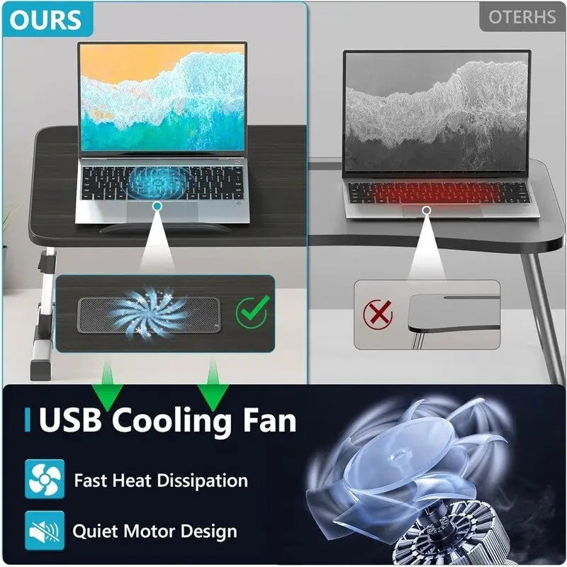 Built-In Cooling Fan Laptop bed table is equipped with USB cooling fan. During use, connect the USB cable to the laptop so that you can use the laptop for a long time without causing overheating. And there is a small drawer on the side of the laptop stand, which can hold small objects such as mouse, pencil, eraser, headphone, glasses, etc. The drawer can bear 4.4 lbs, size: 7.7 x 3.5 x 1.2.