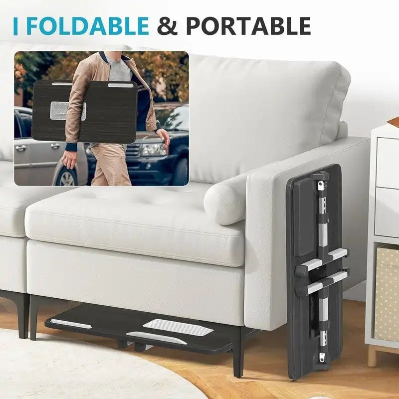 Multiple Uses Desktop Size: 23.8 x 13.4, which is enough to hold 17 laptop. Studying, eating breakfast, watching movies, writing, drawing, all could be done on the bed. And the desktop has been specially treated to be abrasion-resistant, scratch-resistant and waterproof. The laptop adjustable stand is light and easy to carry, allowing you to easily complete work on the bed, sofa/couch or floor.