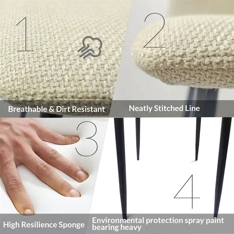 - Made from high-quality Linen/Suedette, this set of four dining chairs features a unique and stylish texture that adds a touch of modernity to any dining room. The chairs are strong and sturdy, ensuring maximum comfort and support during meals.