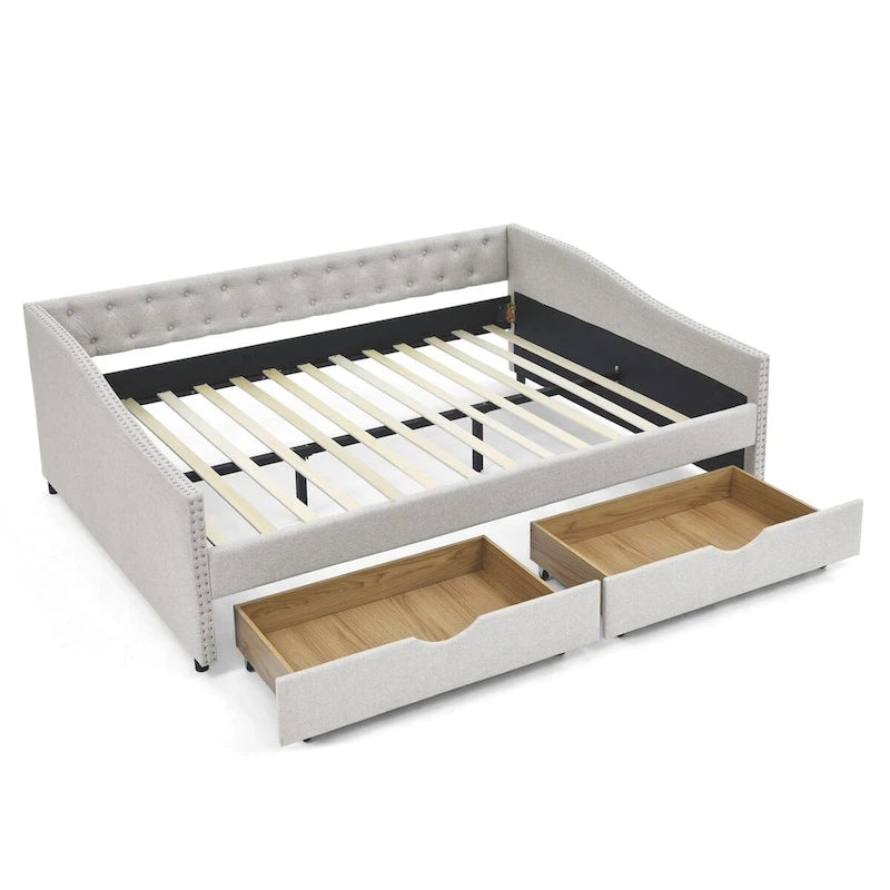 Queen Size Daybed with Drawers Upholstered Tufted Sofa Bed
