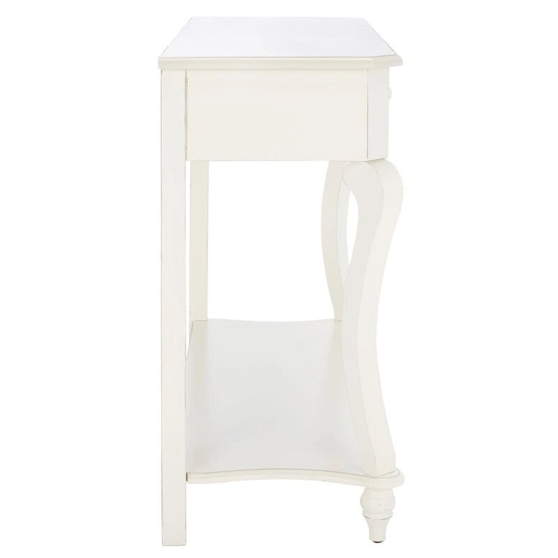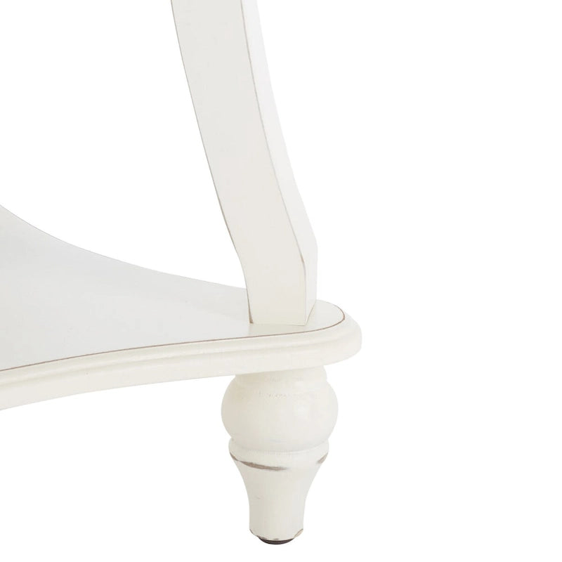 Ideal for the classic-contemporary hall or entryway, this Console takes its inspiration from French antiques. This piece's scalloped shelf, turned legs, and elegantly curved frame in a dark cherry finish pair beautifully with its light brown top, easily accenting any decor. Two drawers provide discreet storage.