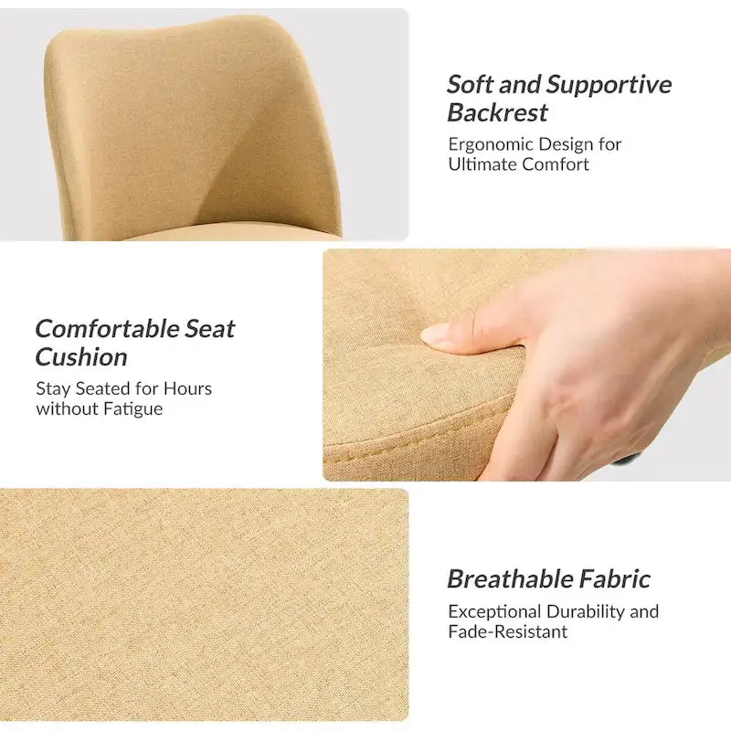 Thisoffice chairis designed for functionality and comfort, making it a suitable addition to any workspace. Itsarmless designallows for easy sliding under desks, maximizing space efficiency. Equipped withsmooth-rolling casters, it ensures effortless mobility around the office, enhancing productivity and convenience. Thechair's height is adjustable, providing customizable seating to suit individual preferences and ergonomic needs. Itscurved backrestoffers lumbar support,reducing pressure on the spineand promoting proper posture during long hours of sitting. Withsturdy metal legs, this chair offers stability and durability, ensuring daily use in your office setting. Whether for a home office or a professional workspace, this office chair creates a seating solution for all-day productivity.