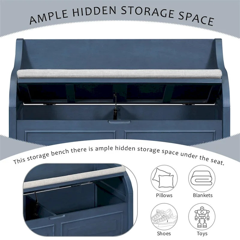 - This storage bench create added seating and storage to any space in your home. Besides, there is ample hidden storage space under the seat. You can put pillows, blankets or other sundries that are not commonly used, which greatly saves space and makes your home look more tidy.