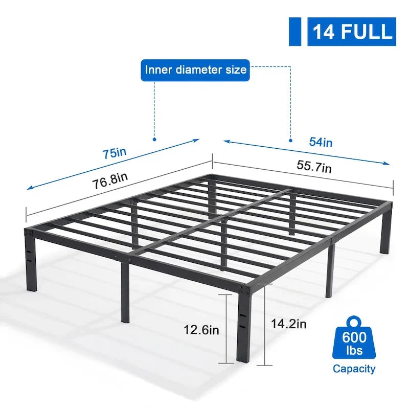 Full Size Bed Frame: 75 x 54 x 14. 2 Inches (LxWxH)